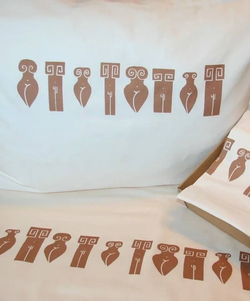 Hjónaverin (2 koddaver og 2 sængurver) kosta frá 85.000 eftir því hve mikið þrykkt/málað er.